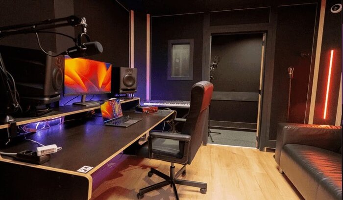 - Cabine vocale : Un espace séparé avec une acoustique de qualité studio pour tes enregistrements vocaux.